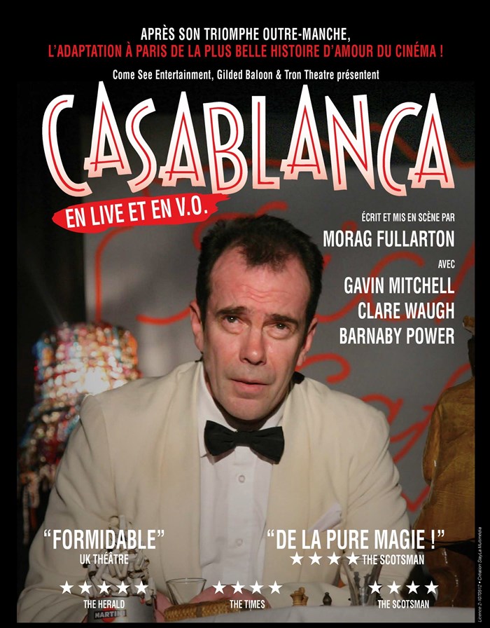 Cette comédie menée à un train d'enfer, truffée de gags et débordante d'action, écrite et dirigée par un metteur en scène couvert d'Awards, rend très intelligemment hommage au film. Elle est interprétée par Gavin Mitchell, l'acteur comique mis en abyme dans le rôle d'Humphrey Bogart incarnant Rick Blaine, ainsi que par Clare Waugh et Barnaby Power.