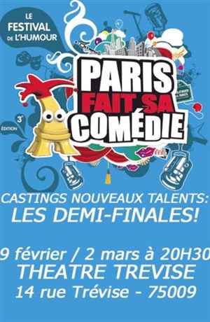 L’événement Casting nouveaux talents: demi-finale Paris fait sa comédie de type Plateau d'humoristes, organisé ici : Théâtre Trévise -