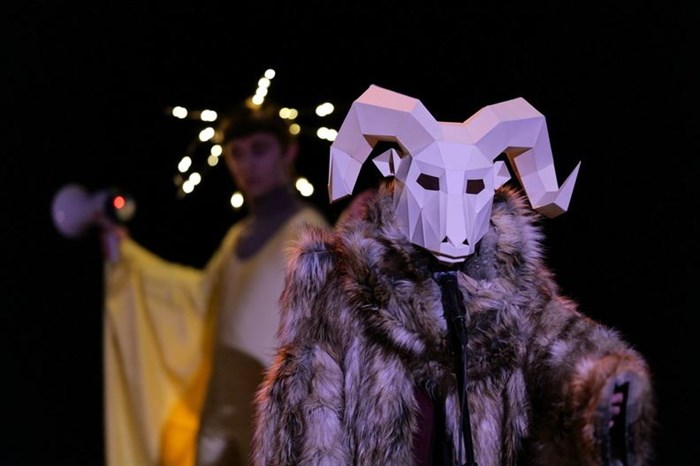 La mise en scène rythmée et non dénuée d'humour met en avant le quatuor d'interprètes qui joue et se déjoue des figures animalières et du choeur narratif.