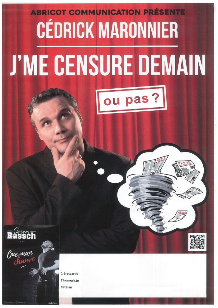 Cedrick Maronnier "Je me censure demain" Imitateur, Humoriste, parodiste, chroniqueur en 1ere partie Jerem Rassch humoriste catalan