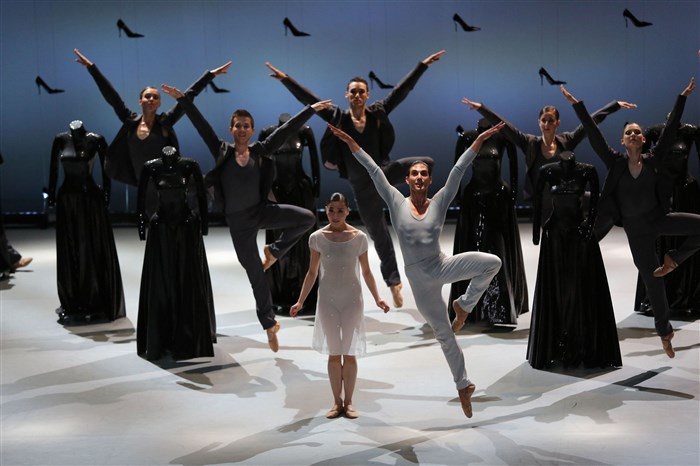 Sur scène, dans un écrin d'une centaine d'escarpins noirs suspendus, les vingt danseurs de la compagnie servent à merveille ce conte revisité.