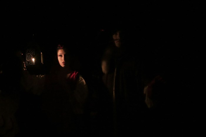 Le jeu est porté par de superbes costumes et un éclairage remarquable à la bougie. On se croit véritablement au coin du feu. Une troupe à part. Du dramatique au grotesque, on rit et on s'effraie à la fois. On vous encourage chaleureusement d'assister à ces Contes!