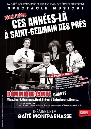 Elégante et sensuelle, Dominique Conte nous entraîne dans l'univers intemporel de la Rive Gauche des années 50 avec ses chants, le charme du rythme, le piquant des mots et l'émotion de la poésie. Lorsque la chanteuse entonne "Déshabillez-moi", cachée derrière un paravent en ombre chinoise, l'illusion semble parfaite, c'est Juliettte Gréco qui est sur scène ! Ce parcours musical original est ponctué d'anecdotes de l'époque avec humour et tendresse. On revit ces années là à Saint-Germain des Prés. Dominique Conte est nature, elle a du chien et de la classe. Enfin, il faut absolument mettre en exergue le trio de musiciens qui sont jeunes et bourrés de talent et d'inventivité et apportent à ce spectacle une formidable bouffée de fraîcheur et de légèreté.