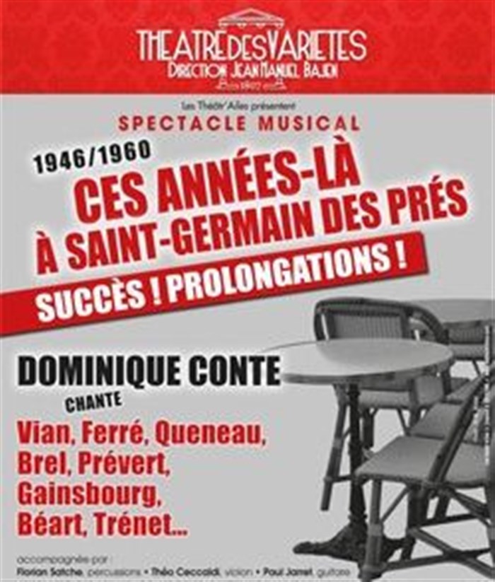 Elégante et sensuelle, Dominique Conte nous entraîne dans l'univers intemporel de la Rive Gauche des années 50 avec ses chants, le charme du rythme, le piquant des mots et l'émotion de la poésie. Lorsque la chanteuse entonne "Déshabillez-moi", cachée derrière un paravent en ombre chinoise, l'illusion semble parfaite, c'est Juliettte Gréco qui est sur scène ! Ce parcours musical original est ponctué d'anecdotes de l'époque avec humour et tendresse. On revit ces années là à Saint-Germain des Prés. Dominique Conte est nature, elle a du chien et de la classe. Enfin, il faut absolument mettre en exergue le trio de musiciens qui sont jeunes et bourrés de talent et d'inventivité et apportent à ce spectacle une formidable bouffée de fraîcheur et de légèreté.