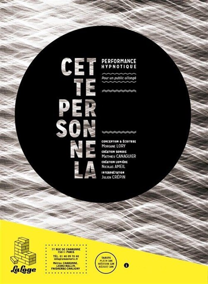 Cette personne-là est une performance acousmatique : la source de ce qui est entendu n'est pas donnée à voir. Cependant, il s'agit bien d'une performance en temps réel, impliquant un acteur dont la voix est amplifiée et un créateur sonore proposant à chaque représentation une trajectoire musicale et bruitiste accompagnant le récit.