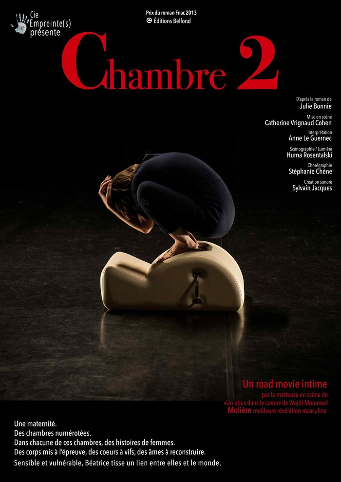 Prix du roman FNAC, Chambre 2, premier ouvrage très remarqué de Julie Bonnie, a déjà fait l'objet d'une adaptation pour le cinéma, avec dans le rôle principal, Sandrine Bonnaire. La metteuse en scène, Catherine Vrignaud Cohen et la comédienne, Anne Le Guernec, lui offre une troisième vie au théâtre avec ce seul-en-scène unanimement salué par la critique.