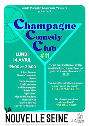 Après ses 10 premières éditions sold out, le Champagne Comedy Club est de retour pour sa 11ème édition le lundi 14 avril à La Nouvelle Seine !