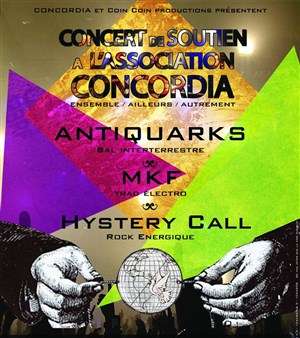Accompagnée par les groupes Antiquarks, MKF[trio] et Hystery Call , le 11 mai sera l'occasion de promouvoir les valeurs portées par les musiciens et l'association au travers d'un concert mêlant musiques éclectiques et chaleur humaine !