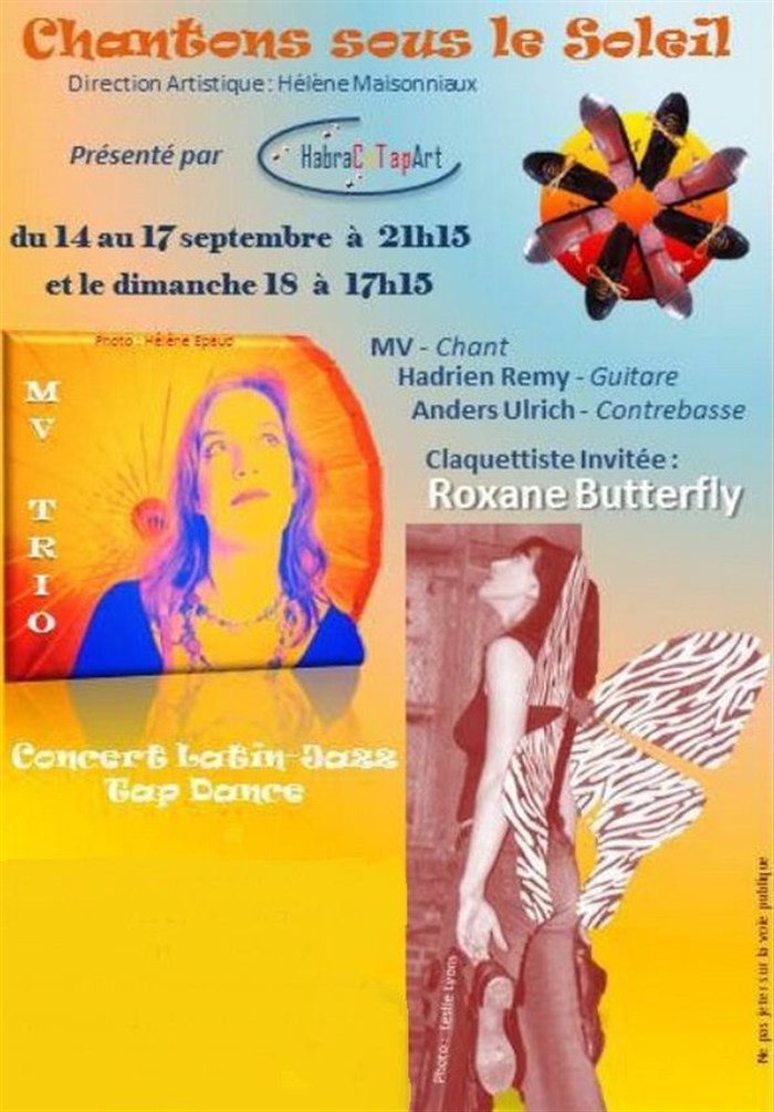 Le MV Trio, honoré de la participation de Roxane Butterfly vous convient à un concert rythmé, accompagné de jazz et d'improvisations de claquettes.
