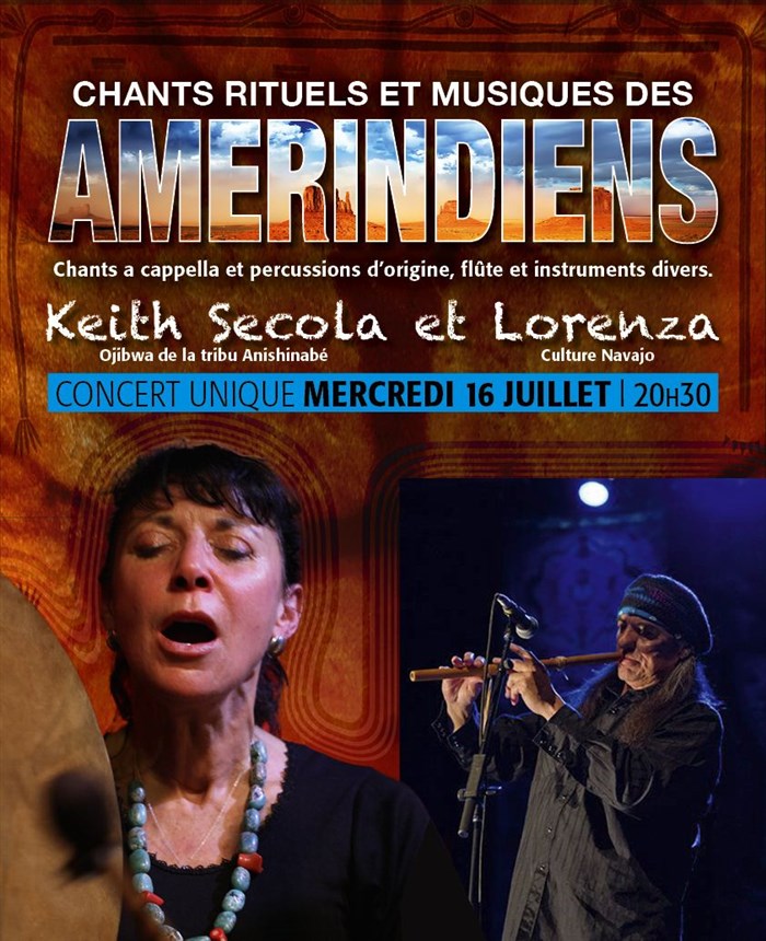 Véritable icône et ambassadeur de la musique amérindienne, Keith Secola, Ojibwa de la Tribu Anishinabe, est né en 1957 dans le Minnesota. De passage en France, il nous chantera, accompagné de Lorenza, de sa flute et son tambour, son histoire et celle de son peuple à travers des chants traditionnels.