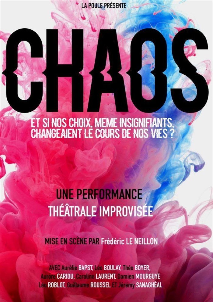 Chaos est une pièce de théâtre improvisé qui prend pour point de départ la proposition d'un spectateur : une situation et un lieu.