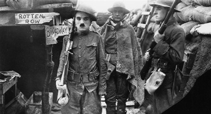Fa7 accompagne Charlot au front. Le célèbre vagabond troque son costume et sa canne contre l'uniforme pour répondre à l'absurdité de la guerre.