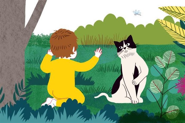 " Oh ! C'est mon chat qui passe dans le jardin. Je vais me promener avec lui ! "
