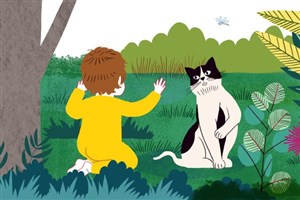 Une partie de cache-cache dans les herbes avec son chat, la contemplation d'un papillon multicolore, de fourmis qui chatouillent, d'un oiseau mélodieux, les premières chutes aussi... Elle va de découverte en découverte pour finir par un câlin réconfortant !