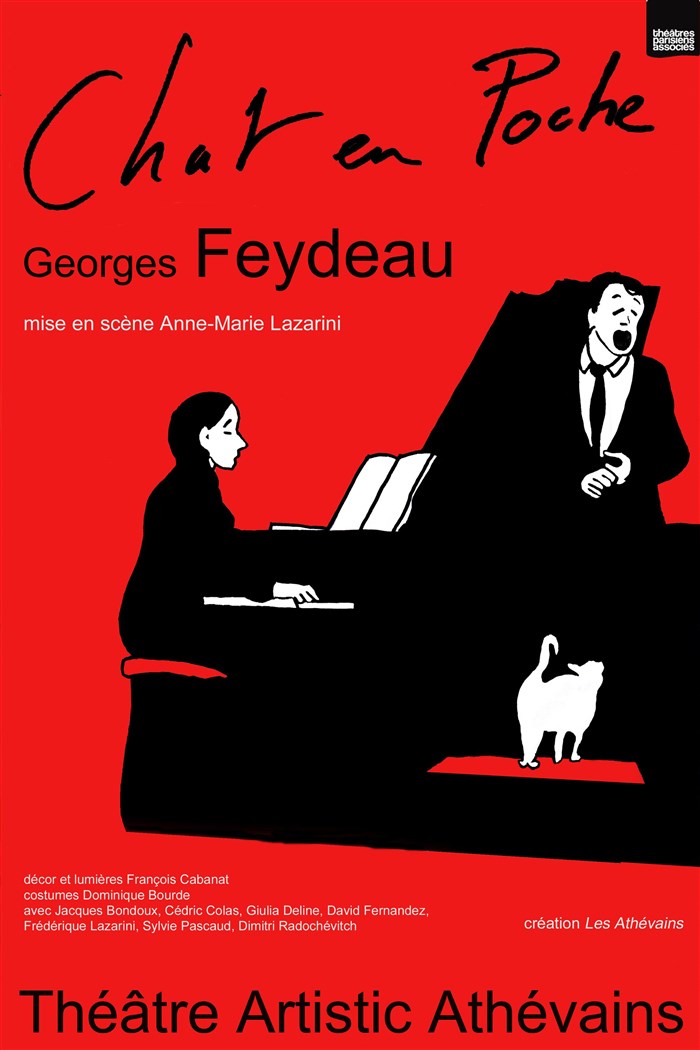 Ce Chat en poche est la deuxième longue pièce d'un Feydeau de 26 ans et l'on y sent toute sa jubilation à tirer les ficelles d'un vaudeville atypique, sans mari trompé, sans jupon retroussé... le tableau corrosif et cocasse d'une société joliment aliénée, piquée de prétentions sociales, de pulsions délictueuses et d'aspirations artistiques.