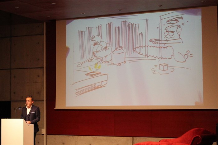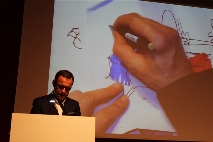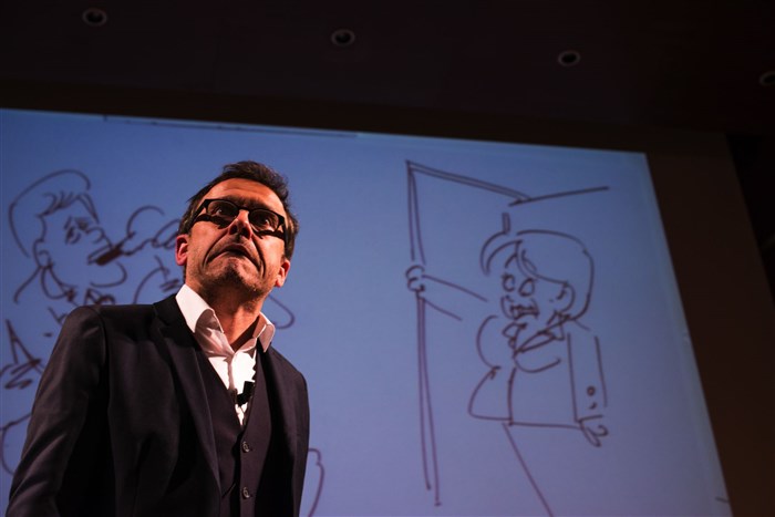 Emmanuel Chaunu est le seul dessinateur de presse à monter sur scène pour allier dessin en direct à la vitesse de l'éclair et humour décalé.