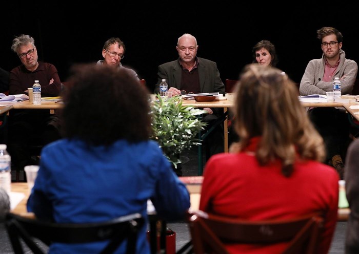 Assis autour d'une grande table, le spectateur est invité à ouvrir le récit biblique comme s'il ne savait rien de ce mythe.