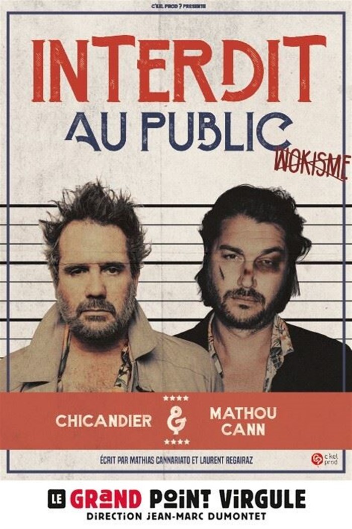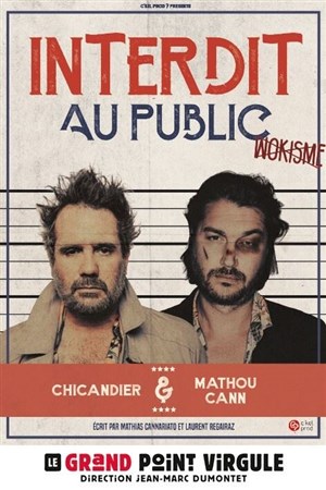 Découvre Chicandier et Mathou Cann dans Interdit au public, qui fait partie de notre sélection d’événements de type Humour et qui se tient ici : Le Grand Point Virgule -