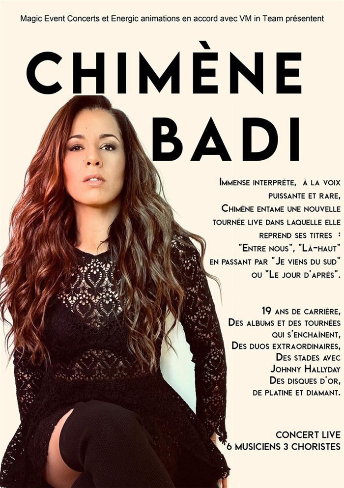 Découvre Chimène Badi, qui fait partie de notre sélection d’événements de type Chanson Française et qui se tient ici : Centre International de Rencontres -