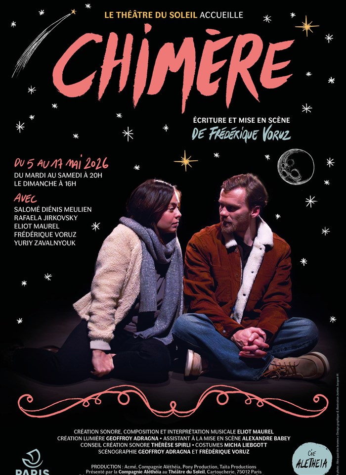 Découvre Chimère, qui fait partie de notre sélection d’événements de type Théâtre contemporain et qui se tient ici : Théâtre du Soleil - Petite salle - La Cartoucherie -