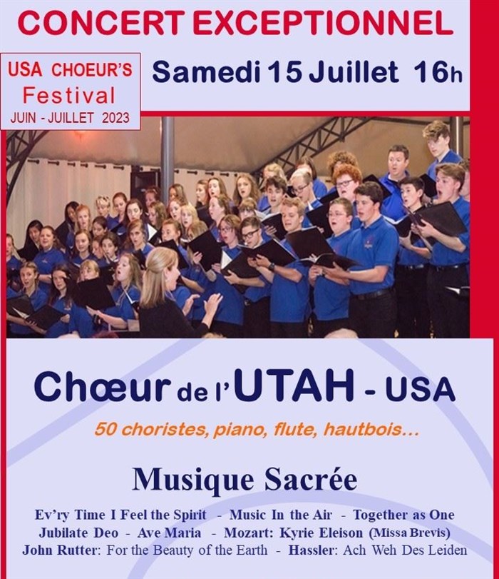 Concert exceptionnel du Choeur de l'Utah, 50 choristes, piano, flûte, hautbois...