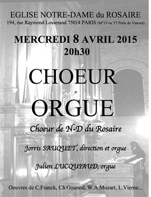 Concert de Pâques avec le choeur de Notre-Dame du Rosaire dirigé par J. Sauquet et accompagné par J. Lucquiaud aux grandes orgues Cavaillé-Coll.
