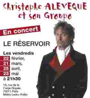 Une super soirée hier au Café de la Danse : Christophe Alévêque et son Groupo - six musiciens d'enfer - ont chauffé la salle pleine à craquer. Bravo pour la musique, les textes et la générosité. Merci aussi de nous avoir fait découvrir Jean-Michel NOIREY en ouverture du concert. Un versant méconnu du talent de Christophe Alévêque qu'il faut continuer à partager. A TRES bientôt j'espère.