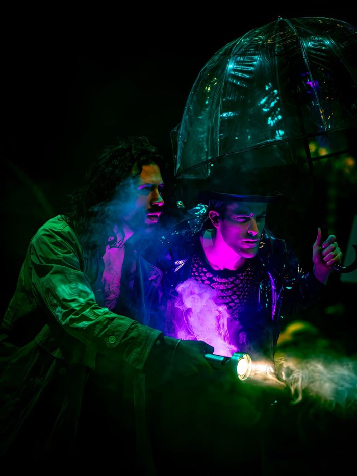 Formé en magie au CNAC, jongleur, musicien et ancien assistant des Daft Punk, Laury Chanty travaille de façon panoramique dans une écriture simultanée de la bande son, des effets sonores, du mouvement et de la programmation lumineuse.