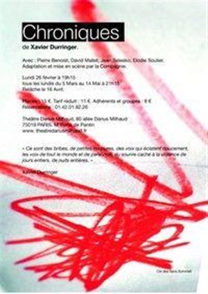 L’événement Chroniques de type Théâtre contemporain, organisé ici : Théâtre Darius Milhaud -