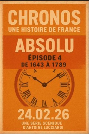 Chronos, c'est la toute première série scénique dédiée à l'histoire. Une création folle d'Antoine Lucciardi en exclusivité pour le Théâtre à l'ouest de Rouen. En sept épisodes explosifs et délirants, plongez dans les couloirs du temps pour un voyage à nul autre pareil. En sept épisodes, des origines à nos jours, croisez grandes figures et anonymes, revivez batailles et soubresauts politiques, innovations et créations qui ont façonné l'hexagone. Et grâce à l'urne du destin, vous pourrez vous aussi influer sur le cours du temps.