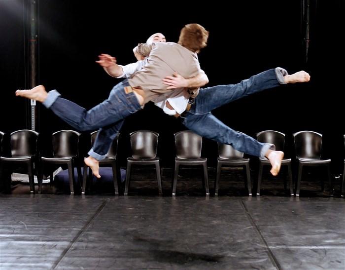 Dans une tentative de conférence spectaculaire, deux acrobates, même taille, même poids, même âge s'interrogent sur la chute, le gadin, la gamelle...