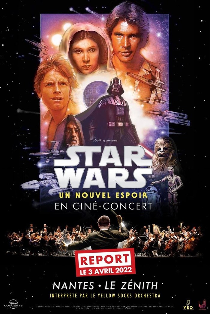 L’événement Ciné-concert Star Wars : Un Nouvel Espoir de type Ciné-Concert, organisé ici : Le Zénith Nantes Métropole - Saint Herblain, n'est plus disponible à la vente.