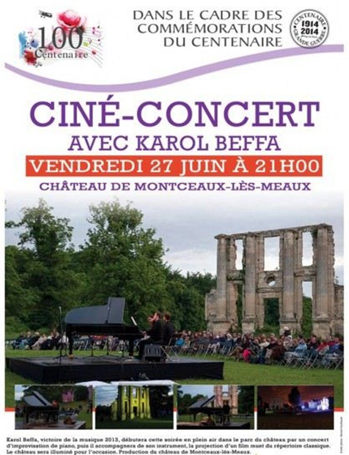 Ciné-concert au parc du Château à Montceaux les Meaux, concert d'improvisation et projection d'un film accompagné par Karol Beffa au piano.