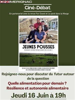 En partenariat avec Le pavé dans la marge et la revue Far Ouest, le Ciné Mérignac vous propose un Ciné-Débat à l'occasion de la projection de "Jeunes Pousses" autour de la question "Quel alimentation ou demain ? Résilience et autonomie alimentaire".