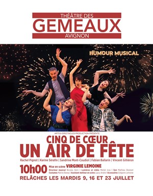 Tu veux savoir ce qu’ont pensé les spectateurs et la presse de cet événement : Cinq de Coeur dans Un Air de Fête - Théâtre des Gémeaux ? Découvre leurs avis éclairés et prépare-toi à vivre un moment d’exception à ton tour en réservant tes places !