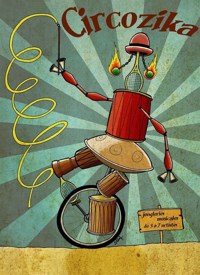Circozika mélange percutant et poétique de numéros de cirque (équilibre de massues, chapeaux, gobelets, cigare, rouleaux américains) et des percussions africaines (doum, djembé kora, hongpan) quant le mouvement rencontre la rythmique, appraissent les émotions.