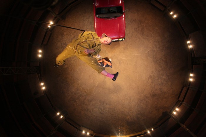 Au rythme de l'autoradio d'une vieille Simca rouge, le duo conjugue les extrêmes dans d'époustouflantes acrobaties et de formidables jeux icariens.