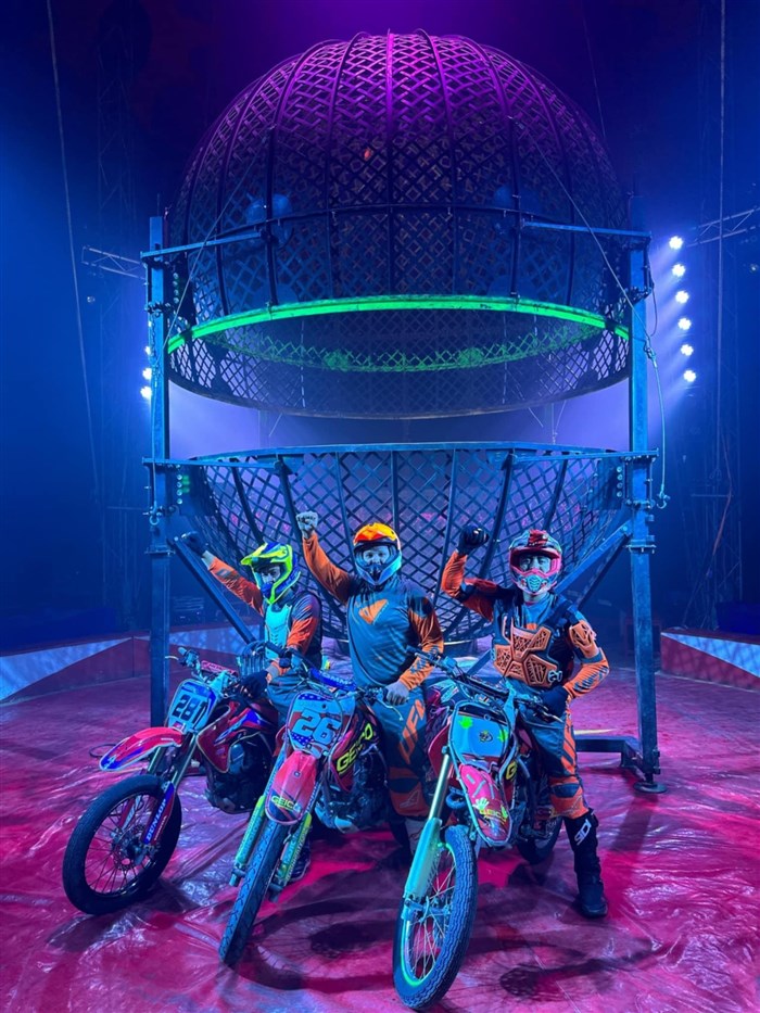 Nos riders avec le globe des motos qui s'ouvrent en deux !
