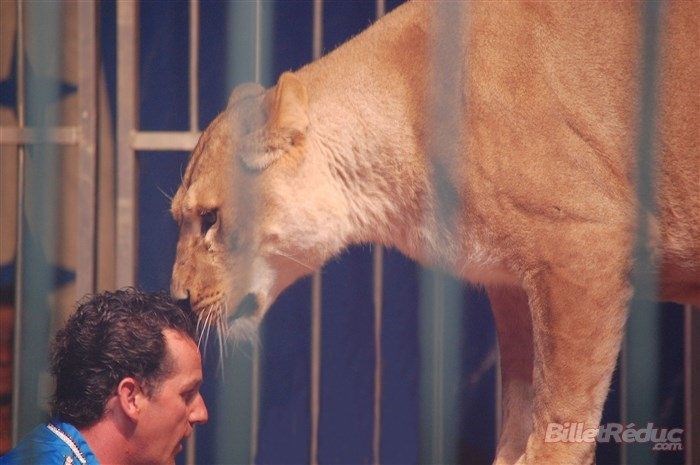 Le dompteur fait face aux tigres du Bengale et aux lionnes d'Afrique. - Le cercle aérien: