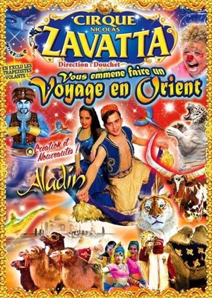 Au détour d'une grande fête persane, applaudissez clowns acrobates, équilibristes, danseurs, magiciens, cavalerie... Rêvez devant l'idyllique envolée aérienne de Jasmine et Aladin. Frémissez devant les tigres et lionnes. Frissonnez avec les fantastiques trapézistes volants.nVous retrouverez les personnages emblématiques du célèbre conte et bien d'autres surprises. Venez rêver avec les artistes du grand cirque Zavatta.