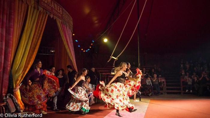 Un tourbillon d'émotions, de grâce et de couleurs : contorsion, trapèze, ruban, cerceaux, funambule, des danses flamenca et tziganes accompagnées par un orchestre venu de Transylvanie au son du violon, guitare, contrebasse, accordéon et le chant de la Gitane.