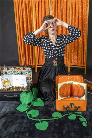 Spectacle en valisettes et en musique, méli-mélo de conte, comptines, marionnettes, albums, chansons et violon.