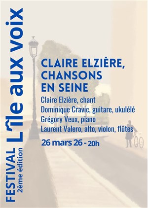 Découvre Claire Elzière, chansons en Seine, qui fait partie de notre sélection d’événements de type Loisirs et qui se tient ici : Théâtre de l'Ile Saint-Louis Paul Rey -