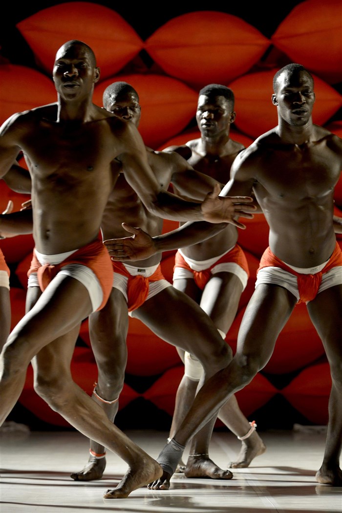 Trois danseurs. Cinq lutteurs. Quatre musiciens et chanteurs, tous dans un même espace, celui de l'arène. La lutte est virilité, muscles et sueur.