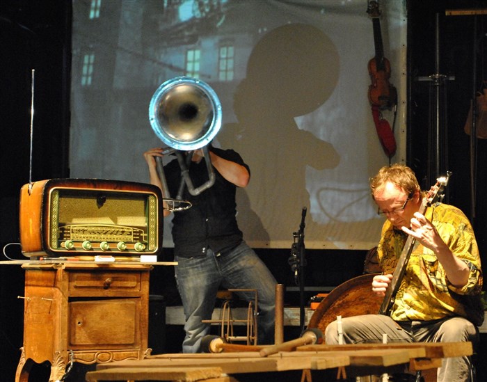 Sur scène, deux luthiers urbains, deux Zics, et un bruiteur de cinéma mélangent non seulement les talents mais aussi les registres et explorent les frontières entre musique, bruitage et vidéo.