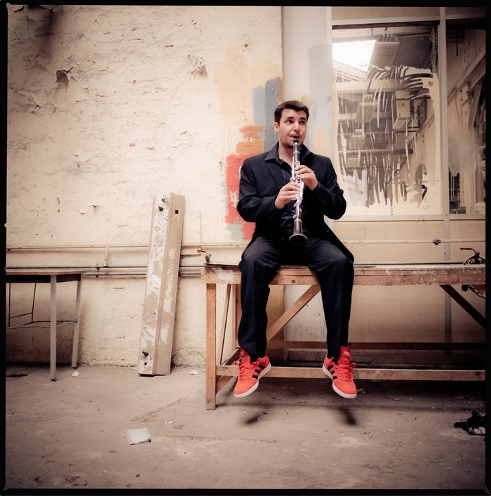 Avec Clarinettes Urbaines, Emilien Véret, seul en scène, explore un univers sonore empreint de musiques du monde, de groove, d'électro-transe, de jazz et de hip hop.