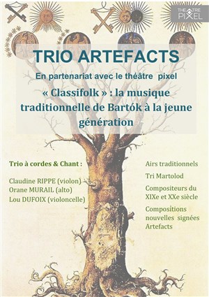Fortes d'une expérience musicale dans différents univers musicaux, les musiciennes du trio Artefacts associent l'exigence de la musique classique à la créativité et la liberté des musiques traditionnelles et actuelles pour vous offrir un spectacle d'un genre unique.