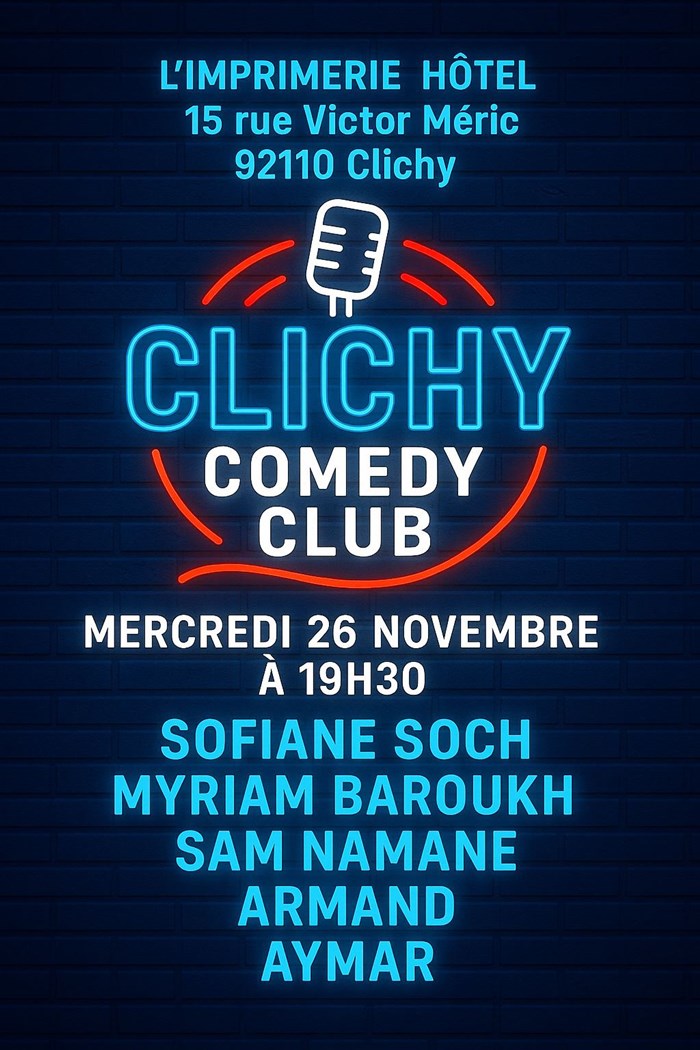 Découvre Clichy Comedy Club, qui fait partie de notre sélection d’événements de type Stand-up et qui se tient ici : L'Imprimerie Hôtel -