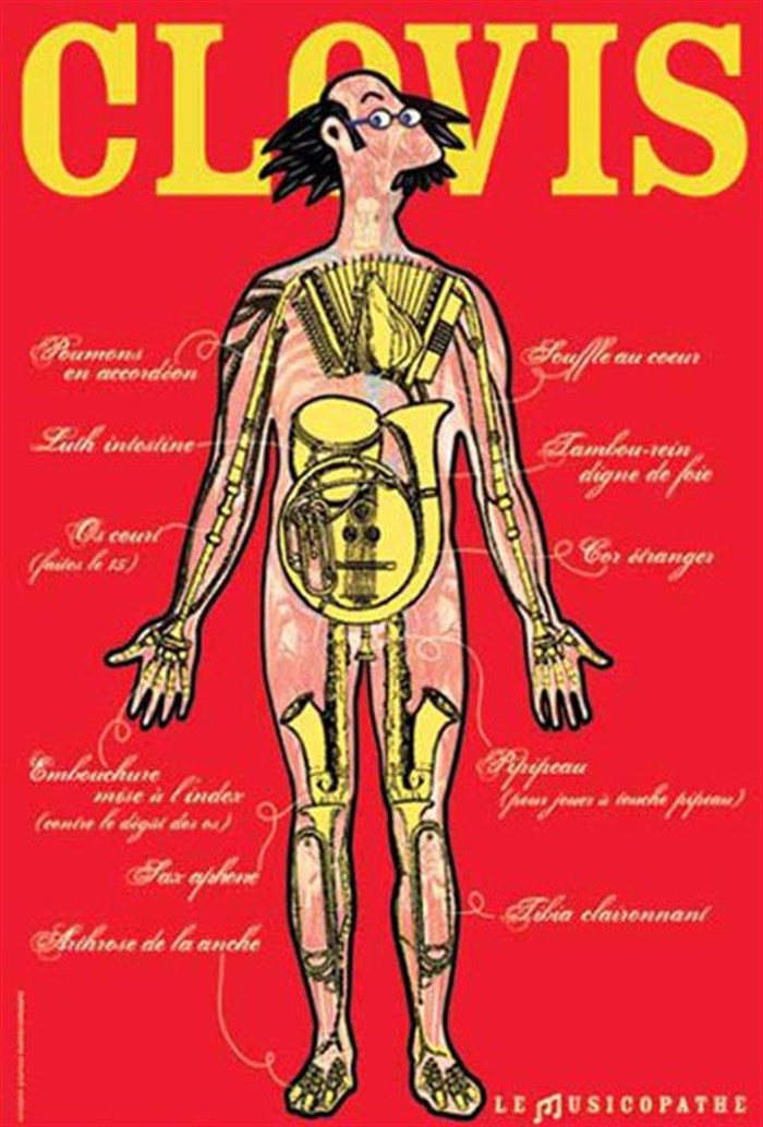 Clovis, musicien burlesque, est atteint d'une maladie bizarre : la musicopathie. Inventeur de ses instruments de musique, il vous fait decouvrir son univers loufoque et excentrique..