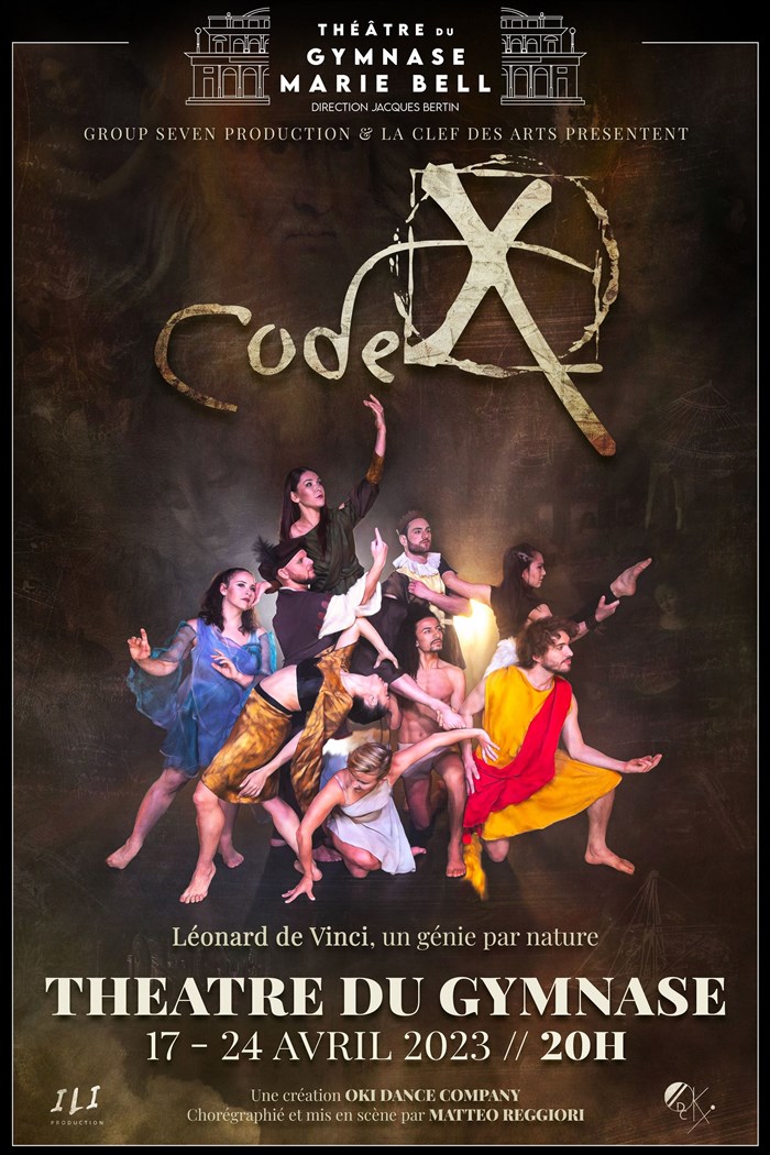 CodeX porte sur la scène la vie personnelle et artistique du grand Léonard De Vinci. Un homme éclectique doté d'une incroyable curiosité sur la réalité autour de lui. Le spectacle s'ouvre sur le petit Léonard qui joue, découvre et invente sa réalité, selon ses propres idées, qui prennent forme et se développent pendant sa croissance. Le public aura l'occasion de découvrir sous un nouveau jour des thématiques autour de son oeuvre telles que les machines, l'étude du geste, la Joconde, le vol et l'écriture spéculaire.
